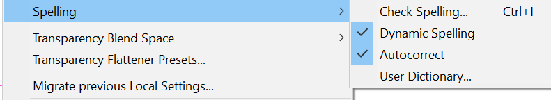 - To set dynamic spelling, go to Edit > Spelling and check Dynamic Spelling & Auto Correct.