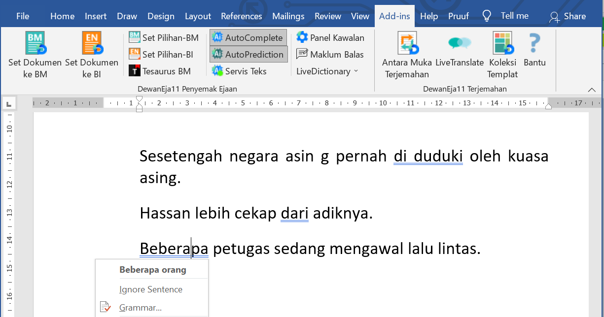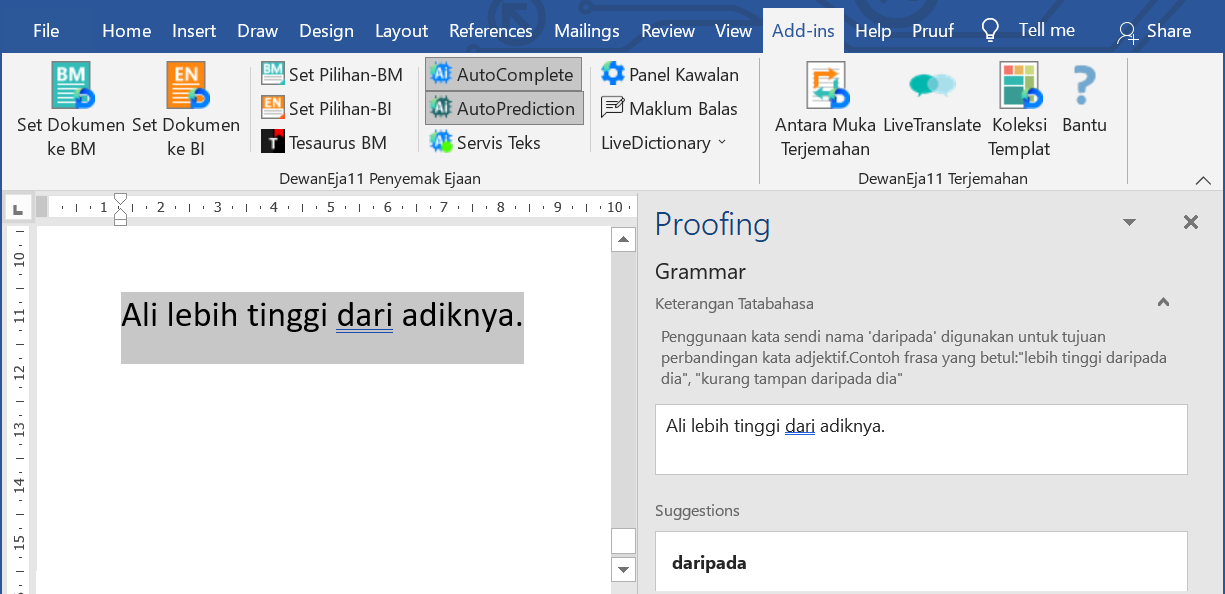 Menggunakan Penyemak Tatabahasa DewanEja11 dalam MS Word