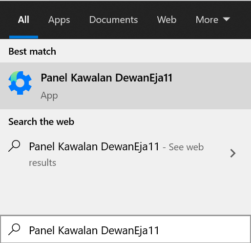 - In Windows search bar, type “Panel Kawalan DewanEja11”