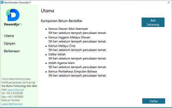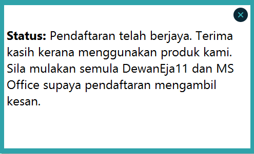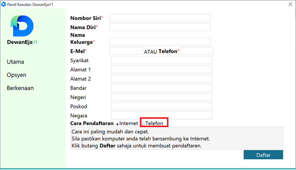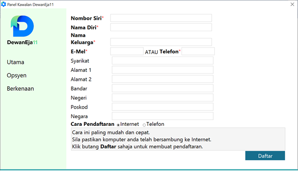 3. On the Panel Kawalan DewanEja11 window, click on the Daftar button.